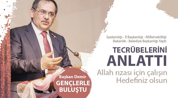 İşadamlığının yanısıra sırasıyla AK Parti İl Başkanlığı, Milletvekilliği, Bayındırlık ve İskan Bakanlığı yapan ve son olarak Samsun Büyükşehir Belediye Başkanlığı görevini yürüten Başkan Mustafa Demir, liseli gençlerle biraraya geldi. Samsun'da 534 öğrencinin eğitim gördüğü Şehit Emrah Sapa Anadolu İmam Hatip Lisesi’nde ‘Kariyer Buluşmaları’ programına katılan Büyükşehir Belediye Başkanı Mustafa Demir, öğrencilere eğitim, iş ve siyaset hayatından kesitler sundu. Tecrübelerini anlatarak, gençliğin omuzlarında yükselen Türkiye’nin sorumluluğu olduğunu söyledi.