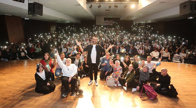 “GRİDEN BEYAZA” başlıklı seminere katılan öğrenciler programın sonunda Eğitimci Yazar Gökhan Müftüoğlu’na kitap imzalattı.