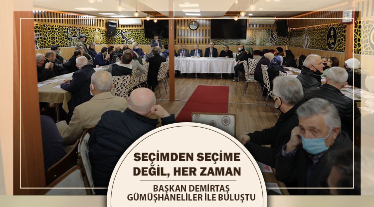 Gümüşhaneliler Kültür ve Yardımlaşma Derneği üyeleri ile bir araya gelen İlkadım Belediye Başkanı Necattin Demirtaş, ”Benim de Belediye Başkanlık maceram hemşehri derneklerinin atılımı ile oldu. Şehrimizin gelişimi için seçimden seçime değil, her zaman ilçemiz için elimizden geleni ortaya koymalıyız. Hep birlikte el ele vererek ilçemizi hak ettiği konuma getireceğiz” dedi.