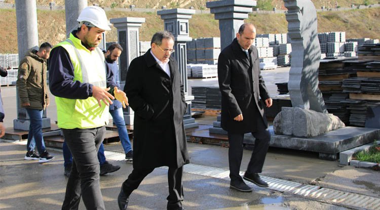 Samsun Büyükşehir Belediye Başkanı Mustafa Demir, tonlarca ağırlıktaki dev kayaların işlenerek sanat eseri ve şehir mobilyasına dönüştürüldüğü Doğal Taş Elemanları Üretim Tesisi'ni ziyaret etti.