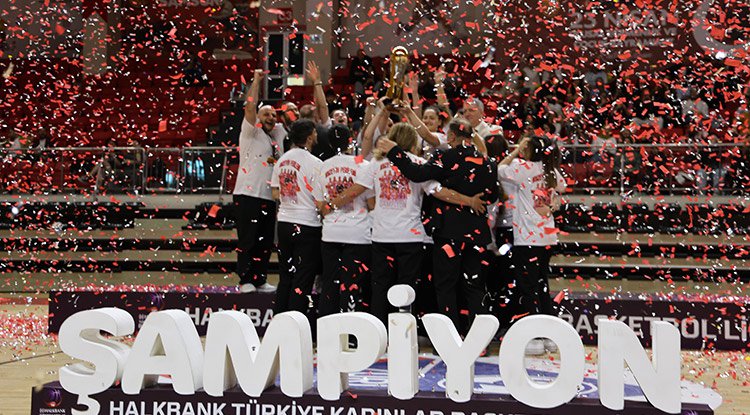 Büyük bir coşkunun yaşandığı törende teknik ekip ve oyuncular, şampiyonluk kupasını TBF yetkililerinin elinden alırken, salonda şampiyonluk şarkıları yankılandı.