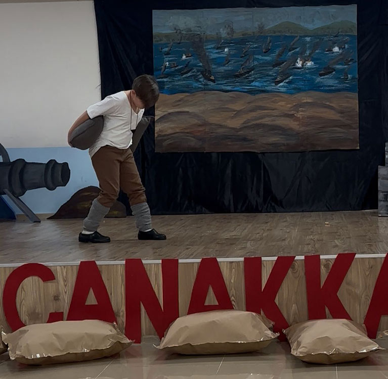 Etkinlik sonunda, hazırlık sürecinde büyük emek veren öğretmen Altınay Kürek’e ve özveriyle sahne alan öğrencilere teşekkür edilirken, programın finalinde verilen “Çanakkale’de kazanan silah değil, halkın umuduydu” mesajı salonda duygusal anlar yaşattı. Çanakkale ruhunu yansıtan anlamlı gösteri, izleyenlerden yoğun beğeni ve alkış aldı.