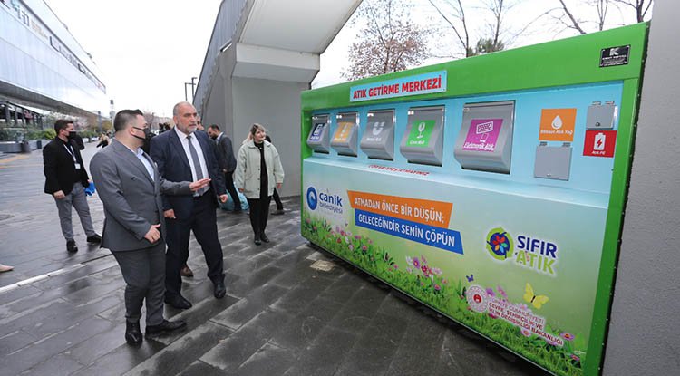 Canik Belediyesi Temizlik İşleri Müdürlüğü tarafından “Atmadan Önce Bir Düşün; Geleceğindir Senin Çöpün” sloganıyla geliştirilen proje kapsamında ilçenin dokuz noktasına yedi bölmeden oluşan Atık Getirme Merkezi kuruldu. Bu merkezler sayesinde kâğıt, plastik, metal, cam, elektronik atık, pil atığı, atık yağlar ayrı ayrı biriktirilerek lisanslı geri dönüşüm firmalarına teslim edildiğini belirten Canik Belediye Başkanı İbrahim Sandıkçı, “Doğayı ve çevreyi korumak; gelecek nesillere temiz bir dünya bırakmak amacıyla projemize sürdürülebilir şekilde devam edeceğiz. Hedefimiz tüm konteynerleri mahalle bazında ikili sisteme dönüştürmek. Bu şekilde ambalaj atık miktarında artış, evsel atık miktarında ise azalma sağlanacak” diye konuştu.