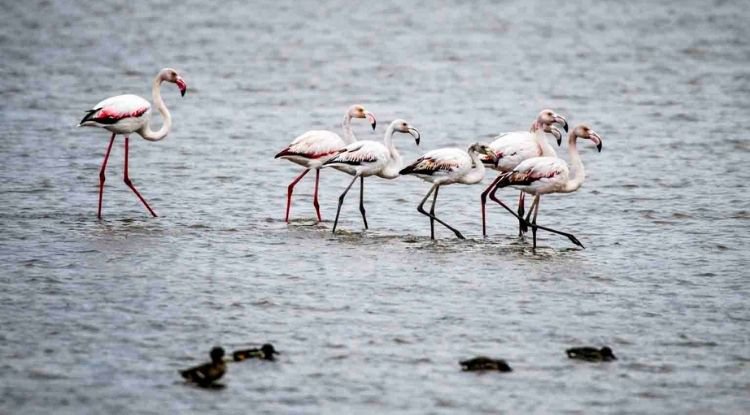 Pembe ayaklı flamingolar ilgi odağı oldu