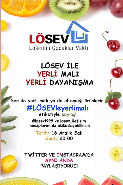 16 Aralık Salı günü saat 20.00’de, yerli malı veya el emeği ürünlerini paylaşmak isteyen herkese birlikte hareket etme çağrısı yapılıyor. Katılımcıların, paylaşımlarına #losevleyerlimali etiketini eklemesi, losev1998 ve losev_iletisim hesaplarını etiketlemeleri yeterli olacak.