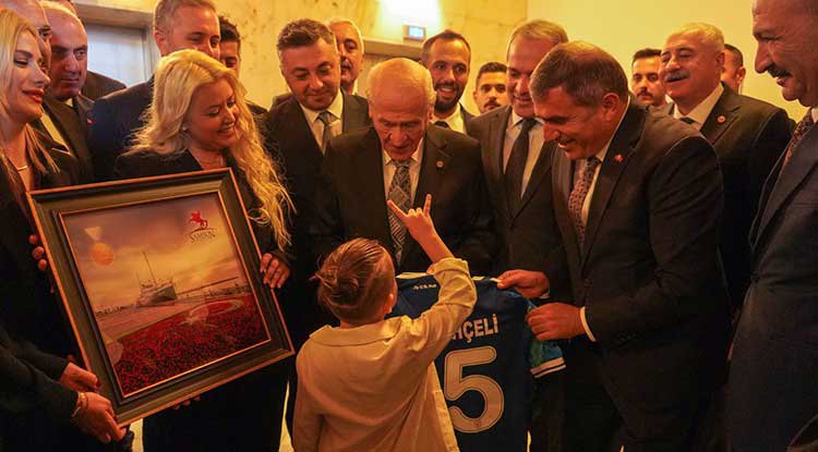 Grup toplantısının ardından gerçekleşen hediye takdimi, ziyaretin en dikkat çekici anlarından biri oldu. MHP Samsun İl Başkanlığı, Genel Başkan Devlet Bahçeli’ye Atatürk Onur Anıtı ve Milli Mücadele'deki kahramanlıkları nedeniyle Türkiye Büyük Millet Meclisi (TBMM) tarafından Samsun'a verilen İstiklal Madalyası'nın da bulunduğu Bandırma Vapuru’nun özel tabloları ile birlikte bir de Samsunspor forması hediye etti. Üzerinde Genel Başkanın ismi yazılı olan Samsunspor forması, teşkilat adına 7 yaşındaki Devlet Ali Anıl tarafından takdim edildi.