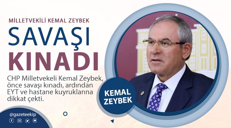 Cumhuriyet Halk Partisi (CHP) Samsun Milletvekili Kemal Zeybek, "Savaş bir insanlık suçudur, barbarlıktır. Savaş, toplumların refah ve mutluluğu için en büyük tehdittir. Bölgemizde savaşın çıkmasına neden olanları ve savaşı destekleyenleri şiddetle kınıyorum" dedi.