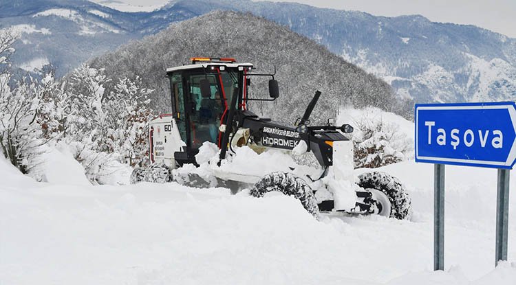 Ülke genelini etkisi altına alan kar, Samsun’da da yaşam koşullarını zorlaştırmaya devam ediyor. Son 5 yılın en fazla kar yağışının görüldüğü şehirde, yağış etkisini artırırken, turizm potansiyeli yüksek ilçelerde de kar ulaşımı olumsuz etkiliyor. Karla mücadele hazırlıklarını haftalar öncesinden tamamlayan Samsun Büyükşehir Belediyesi, yağışın başladığı ilk günden itibaren 17 ilçede yoğun çalışma yürütüyor. Kırsal 14 ilçedeki yol açma çalışmalarını 112 Acil Çağrı Merkezi’ne yapılan ihbarların aciliyet durumuna göre sürdüren Büyükşehir Belediyesi, organizasyon ve hızlı hareket kabiliyetiyle mağduriyetlerin önüne geçiyor. İl genelinde toplam bin 249 mahalleden ulaşıma kapanan 114 yolu açmaya çalışan Yol Yapım Bakım ve Onarım Dairesi Başkanlığı ekipleri, turistik ilçelerde de yoğun mücadele veriyor. Ayvacık ilçesinde 5, Vezirköprü ilçesinde 12 ve Ladik ilçesinde de 4 mahalle yolundaki çalışmalar sürerken, Ayvacık’ın yüksek rakımlı yerleşimlerinden Karşı Döngel, Haydar, Çarşıköy, Kazancılı ve Karabekir mahalleleri ile Hapan grup yolu ulaşıma açıldı.