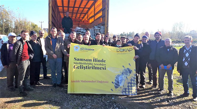 Samsun'da eğitim, kültür, turizm, spor, sağlık ve tarım alanlarında yaptığı yatırımlarla örnek olan Büyükşehir Belediyesi, üreticilere destek olmaya devam ediyor. Bu kapsamda arıcılığın gelişmesi ve bal üretiminin artırılması amacıyla Tarımsal Hizmetler Dairesi Başkanlığı aracılığıyla 17 ilçedeki 140 arıcıya maske, eldiven, pantolon, el demiri ve körükten oluşan ekipman desteğinde bulunuldu. Sürdürülebilir Arıcılığın Geliştirilmesi Projesi kapsamında DOKAP iş birliğinde verilen ekipman desteklerinin teslimleri de Havza, Bafra ve Çarşamba ilçelerinde yapıldı.