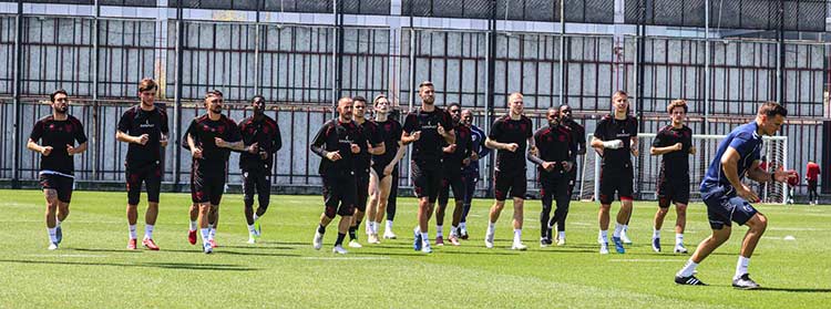 Nuri Asan Tesisleri’nde Teknik Direktör Thorsten Fink gözetiminde yapılan çalışma, ısınma ve tempolu koşu egzersizleriyle başladı.