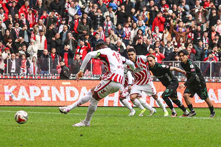 78. dakikada gelişen Konyaspor atağında, sağ kanattan yapılan ortada Blaž Kramer topu ağlara gönderdi ve skor 2-2’ye geldi. Beraberlik golünden sonra baskısını daha da artıran kırmızı-beyazlılar, 90. dakikada gelişen atakta, ceza sahası içinde Marius Mouandilmadji’nin Adamo Nagalo tarafından düşürülmesi sonucunda penaltı kazandı, pozisyon sonrası Nagalo, ikinci sarı karttan kırmızı kart gördü. Olivier Ntcham penaltı vuruşundan yararlanamadı.