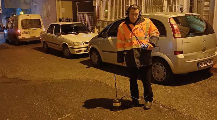 Şebekelerdeki kayıp kaçakları, hatta verilen su ile abonelere faturalandırılan su miktarı arasındaki farkın hesaplanması veya yer üstünde tespit edilen sızıntılardan alınan numunenin içme suyuna ait olduğunun anlaşılmasıyla belirleyen İçme Suyu Dairesi Başkanlığı, bölgeye yeraltı dinleme ekiplerini gönderiyor. Akustik yer mikrofonu ve frekans analiz cihazıyla bölgede ses dinlemesi yapan ekipler, kaçağın bulunduğu yerleri kesin bir doğrulukla tespit ediyor. Alan kırmızı boyayla işaretlendikten sonra gelen arıza ekipleri, su kaçağını tamir ediyor.