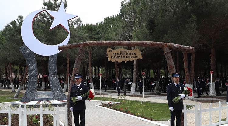 İzmir Adliyesine 8 yıl önce terör örgütü PKK mensuplarınca düzenlenen hain saldırıda şehit olan polis memuru Fethi Sekin'in mezun olduğu Samsun 19 Mayıs Polis Meslek Yüksekokulunda, şehitlerin anısına “Kahramanlar Ormanı" yapıldı. Samsun 19 Mayıs Polis Meslek Yüksekokulunda, "19 Mayıs PMYO Kahramanlar Ormanı” açılış töreni düzenlendi. Öğrenciler, tören yürüyüşü gerçekleştirdi. Eğitim alanının yanında bulunan ormandaki yaklaşık 40 yıllık çam ağaçlarına, Sekin'in de aralarında bulunduğu okuldan mezun olan şehitlerin isimleri verildi. Şehitlerin fotoğraflarının da yer aldığı her ağacın başında polis okulu öğrencileri nöbet tuttu. Öğrenciler, anıt ağaçları ziyaret edenlere şehitlerin isimleriyle selamladı. Ormanın yanında ay yıldızdan oluşan “19 Mayıs PMYO Kahramanlar” yazılı şehitlik anıtı da oluşturuldu.