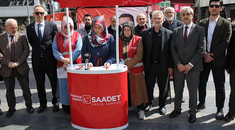 Saadet Partisi (SP) Samsun Kadın Kolları tarafından düzenlenen basın açıklamasında toplumsal ve siyasal çürümeye dikkat çekildi. Kadın Kolları Başkanı Özlem Deniz, "Bizler, bu ülkenin insanına kader olarak çürümeyi, adaletsizliği ve değersizleşmeyi reva gören anlayışı kabul etmiyoruz" dedi.