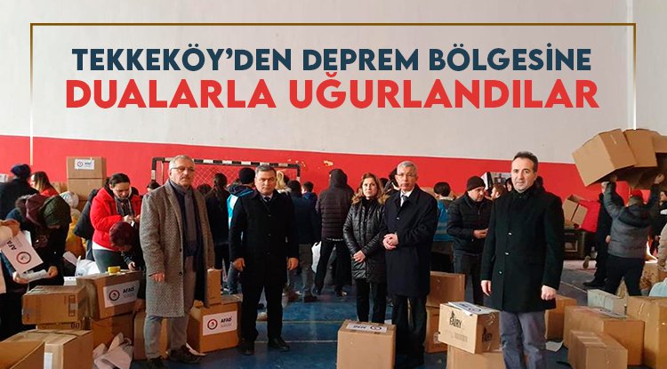 Samsun Valiliğinin himayelerinde AFAD Koordinesiyle Tekkeköy Kaymakamlığı ve Tekkeköy Belediyesinin başlatmış olduğu yardım kampanyasında bağışlanan battaniye, katalitik soba, tüp, hazır giyim, çocuk montu, bebek maması ve temel gıdalardan oluşan malzemeler, Tekkeköy İlkokulu Spor Salonunda toplandı. Tırlaka yüklenen yardım malzemeleri dualarla uğurlandı.
