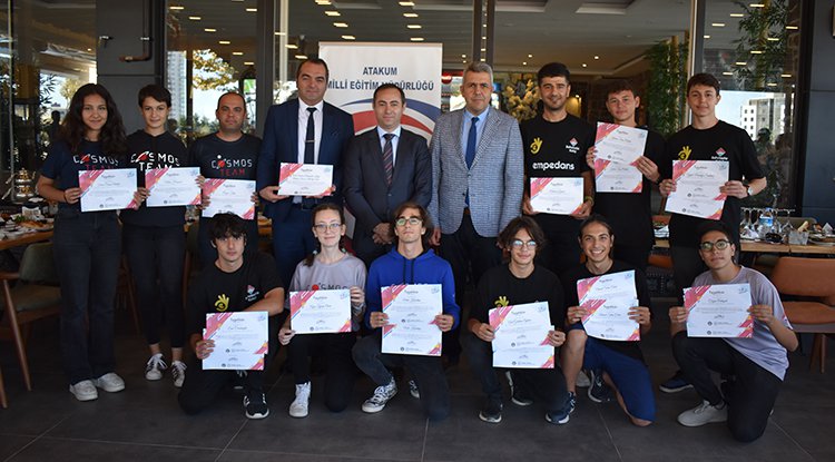 TEKNOFEST KARADENİZ’in Şampiyonları; Atakum Kaymakamı Kemal Yıldız, İlçe Milli Eğitim Müdürü Mehmet İrfan Yetik, Şube Müdürleri, Atakum Bilim ve Sanat Merkezi, Bahçeşehir, Doğa ve Sınav Koleji Müdürleri ve takım öğrencilerinin katılımlarıyla Atakum İlçe Milli Eğitim Müdürlüğü tarafından organize edilen kahvaltıda bir araya geldiler.