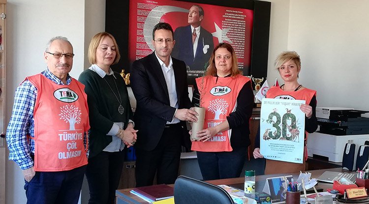TEMA Vakfı Atakum İlçe Sorumlusu Habib Alan, TEMA Vakfı Basından Sorumlu İl Temsilci Yardımcısı Bilsen Şahin, Lale Berkyer Yücel, Ayça Özgün Millî Eğitim Vakfı İlkokulu Müdürü Hikmet Özkan'ı makamında ziyaret ederek, vakfın çalışmaları hakkında bilgi verdi.