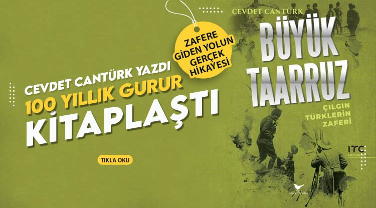 Türk milletinin 100 yıllık gururu Büyük Taarruz kitaplaştı. İstiklal Harbi araştırmacısı Cevdet Cantürk, zafere giden yolun gerçek hikâyesini kaleme aldı. "Büyük Taarruz / Çılgın Türklerin Zaferi" adlı kitap, büyük destanı anlatıyor. Askeri tarih belgeleri, gizli arşivlerin yıllar sonra gün ışığına çıkan raporları ve savaşçıların anlattıkları ışığında derlenen kitap, 176 sayfadan oluşuyor.