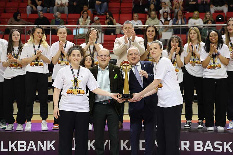 Büyük bir coşkunun yaşandığı törende teknik ekip ve oyuncular, şampiyonluk kupasını TBF yetkililerinin elinden alırken, salonda şampiyonluk şarkıları yankılandı.