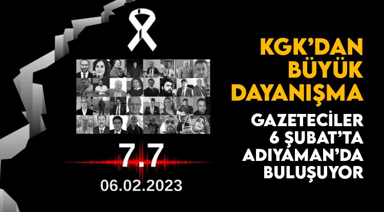 Ayrıca, deprem bölgesi ve komşu illerden gelen 30’dan fazla il temsilcisinin de katılımıyla daraltılmış bir yerel medya meclis toplantısı yapılacak. KGK Yönetim Kurulu, 6 Şubat dolayısıyla yazılı bir mesaj yayınladı. Genel Başkan Mehmet Ali Dim imzasıyla yayınlanan mesaj şöyle: