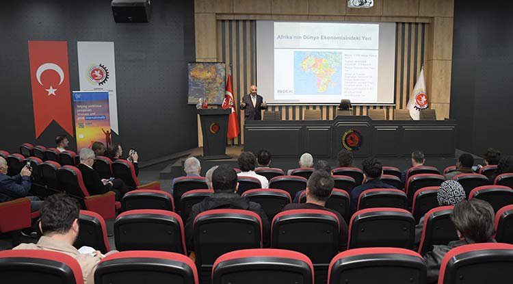 Programın konuğu Güney Afrika Cumhuriyeti İzmir Fahri Başkonsolosu Tamer Taşkın, kıta genelindeki ticari dinamikler ve sektörel fırsatlar hakkında katılımcılara kapsamlı bilgiler aktardı. Taşkın, “Afrika’da hangi sektörler öne çıkıyor?”, “Türkiye–Afrika ticaretinde yeni iş birlikleri neler olabilir?”, “Afrika pazarına girişte dikkat edilmesi gerekenler neler?”, “Afrika’nın dünya ekonomisindeki yeri”, “Türk firmalarına yönelik iş fırsatları” gibi birçok başlıkta detaylı sunum yaptı. Afrika kıtasının, genç nüfusu, doğal kaynakları ve büyüyen orta sınıfıyla dikkat çekici bir potansiyele sahip olduğunu belirten Taşkın, özellikle üretim, altyapı, enerji, madencilik, tekstil ve gıda sektörlerinde önemli fırsatları içinde barındırdığını belirterek, Türk iş insanlarını yatırım ve iş birliklerine davet. Program, soru-cevap kısmından sonra anı takdiminin ardından sona erdi.