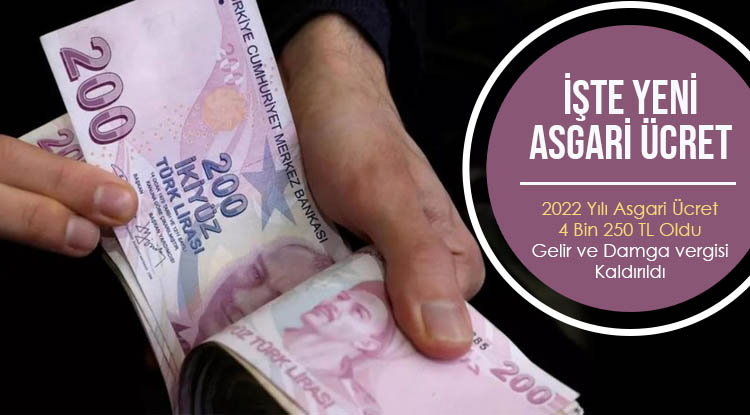 2022 ASGARİ ÜCRETİ 4 BİN 250 TL OLDU
