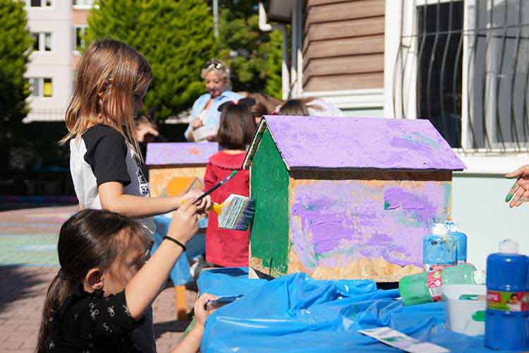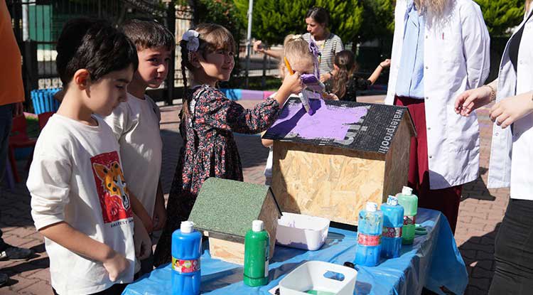 Öğrencilerin sorularını da yanıtlayan ekip, ardından öğrencilerin hayvanlarla aktif olarak ilgilenebilmesi için okullara iki adet kedi kulübesi ile kuş evi hediye etti. Bilgilendirmenin ardından gerçekleştirilen boyama etkinliğinde, renkli görüntüler oluştu. Ellerini çeşitli renklere boyayan hayvansever minikler, ardından kedi kulübeleri ve kuş evlerini el izleri ile renklendirdiler. Sokak hayvanlarına yönelik duyarlılığın artırılmasına yönelik düzenlenen etkinlik, eğitici olduğu kadar eğlenceli anlara sahne oldu.