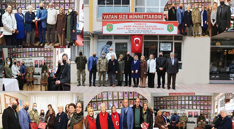 Bafra’daki Dernek binasına girişte, Türk Silahlı Kuvvetleri Mehmetçik Vakfı Samsun Temsilcisi Emekli Albay Hüseyin Rahmi Kabakcı ve Samsun Garnizon Komutanı Topçu Albay İbrahim Camcı’yı’ Türkiye Harp Malulü Gaziler Şehit Dul ve Yetimleri Derneği Bafra Şubesi Yönetim Kurulu Başkanı Saadet Var’a Türkiye Harp Malulü Gaziler Şehit Dul ve Yetimleri Derneği Bafra Şubesi Basın Sözcüsü Köksal Öner ve derneğin Yönetim Kurulu üyelerinden Arife Gülal ile Fikrîye Önder de kapıda karşıladı.