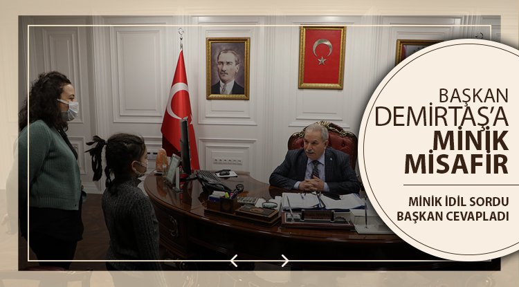 İlkadım Gazi Paşa İlköğretim Okulunda okuyan minik İdil, okul ödevini tamamlamak için İlkadım Belediye Başkanı Necattin Demirtaş’ı makamında ziyaret etti.