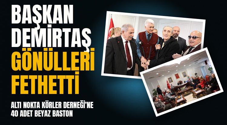 Hizmet gezileri sırasında Samsun Altı Nokta Körler Derneği Samsun Şube Başkanı Ufuk Gürbüz ve yönetim kurulu üyelerine misafir olan Başkan Demirtaş, ”Beyaz Baston” talebinde bulunan Dernek Başkanı Gürbüz’ün bu isteğini yerine getirdi.