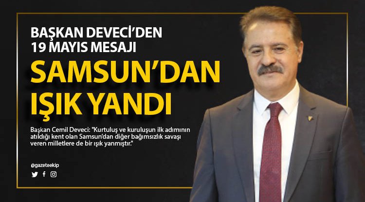 Atakum Belediye Başkanı Av. Cemil Deveci, 19 Mayıs Atatürk’ü Anma, Gençlik ve Spor Bayramı nedeniyle yayımladığı mesajında, "Kurtuluş ve kuruluşun ilk adımının atıldığı kent olan Samsun’dan diğer bağımsızlık savaşı veren milletlere de bir ışık yanmıştır" dedi.