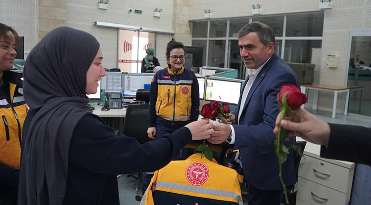 MHP Samsun İl Başkanı Burhan Mucur, 8 Mart Dünya Kadınlar Günü dolayısıyla anlamlı bir ziyaret gerçekleştirdi. İl Yöneticileri, Atakum İlçe Başkanı Ahmet Hatinoğlu, İlçe Yöneticileri ve Türk Sağlık-Sen Samsun Şube Başkanı Gökhan Şahin ile birlikte Samsun 112 Acil Çağrı Merkezi’ni ziyaret eden Burhan Mucur, özverili çalışmalarıyla toplumun her alanında önemli roller üstlenen kadınların gününü kutladı.