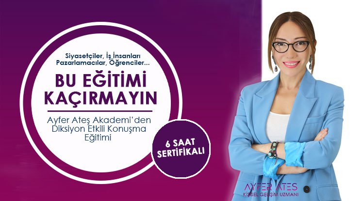 Güçlü bir eğitim içeriği hazırladıklarını belirten Ayfer Ateş Akademi Sahibi ve Kişisel Gelişim Uzmanı Ayfer Ateş, "Başarı tesadüf değildir. Hayatın formülü çok açık, herşey kendini geliştirmekle başlar. Bu nedenle başarı için iyi bir iletişim de olmazsa olmazdır. Vereceğimiz 'Diksiyon Etkili Konuşma Eğitimi' ile insanların güçlü iletişim kurma kabiliyetini geliştiriyoruz. Bu yönde çok güçlü ve harika bir eğitim içeriği hazırladık. Herkes bu eğitimi mutlaka almalı" dedi.