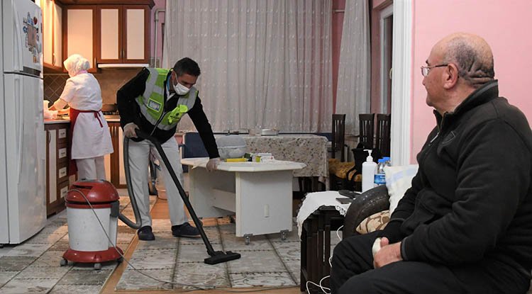 Evin her tarafını süpürerek yerleri, cam ve kapıları silen belediye personelleri, odadaki her eşyanın tozunu alıyor. Banyo ve lavabolar deterjanlarla fırçalanarak temizlenirken, diğer yandan da bulaşıkları yıkanıp yemekleri pişiriliyor. Saç sakal kesiminin yanı sıra ihtiyaç halinde çamaşırhane hizmeti de veriliyor. Sonrasında çalışanlar, engelli ve yaşlılarla sohbet ederek kendilerini yalnız ve çaresiz hissetmemelerinin önüne geçiyor.