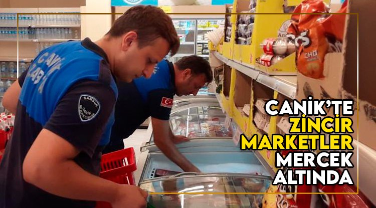 Vatandaşların güvenli ve hijyenik ortamlarda alışveriş yapabilmeleri için denetim ve kontrollerini yoğun bir şekilde sürdüren Canik Belediyesi Zabıta Müdürlüğü ekipleri, ilçede faaliyet gösteren zincir markerlere yönelik denetimlerine hız kesmeden devam ediyor. İlçedeki zincir marketleri tek tek denetleyen zabıta müdürlüğü ekipleri, marketlerde satışa sunulan ürünlerin, son tüketim tarihi, kasa-raf fiyat uygunluğu, saklama koşulları, hijyen ve gramaj kontrollerini titizlikle gerçekleştiriyor.