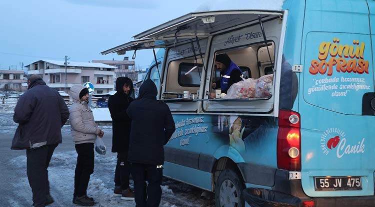 Canik Belediyesi, ilçede karla mücadele çalışmalarını aralıksız bir şekilde sürdürürken, vatandaşlara ise çorba ikramında bulunuyor.