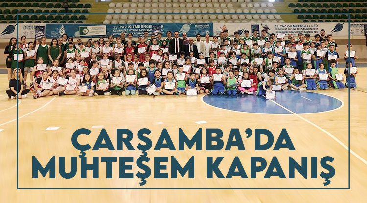 Çarşamba Spor Salonu'nda düzenlenen kapanış töreninde Çarşamba Kaymakamı Doç. Dr. Şükrü Yıldırım, Çarşamba Cumhuriyet Baş Savcısı Aşkın Yeğin, Çarşamba Gençlik ve Spor ilçe Müdürü Turgay Ekşki, Ondokuz Mayıs Üniversitesi (OMÜ) Kenevir Enstisi Müdürü Prof. Dr. Selim Aytaç, Çarşamba Belediyespor Basketbol Kulübü Müdürü Mücahit Okuyucu ve Çarşamba Şehit Nuri Pamir İlkokulu Müdürü Lokmam Mum tarafından kış sezonu boyunca basketbol branşında eğitim alan sporculara başarı belgeleri takdim edildi.