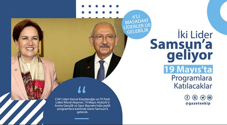 Cumhuriyet Halk Partisi (CHP) Genel Başkanı Kemal Kılıçdaroğlu ve İYİ Parti Genel Başkanı Meral Akşener'in 19 Mayıs'ta Samsun'a geleceği öğrenildi.