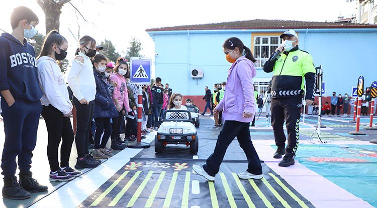 Çocukların trafik kurallarını eğlenerek öğrenmelerini sağlamak ve bilinçli nesiller yetiştirmek amacıyla Çarşamba Belediyesi tarafından ‘Gezici Trafik Eğitimi Parkuru’ ile Atatürk İlkokulunda öğrencilere trafik eğitimi verildi.