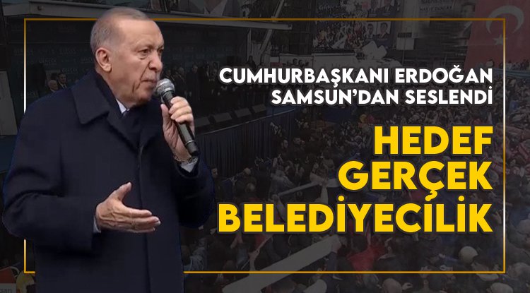Cumhurbaşkanı Erdoğan, 31 Mart yerel seçimleri öncesi Mısır temaslarının ardından ilk mitingini Samsun'da gerçekleştirdi. Burada coşkulu kalabalığa seslenen Erdoğan, seçimlerde hedeflerinin ülkenin tamamını gerçek belediyecilikle buluşturmak olduğunu söyledi.