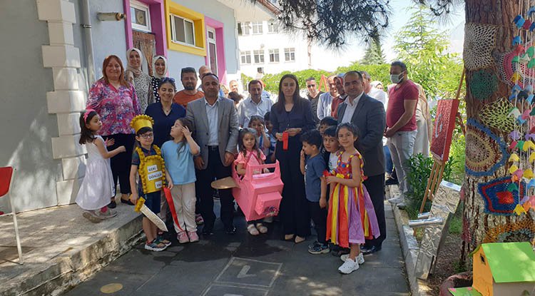 Anaokul olarak önemli bir projenin altına imza attıklarını vurgulayan Vezirköprü Cumhuriyet Anaokulu Müdürü Fatma Özalıcı Sefacı, “Sergide geri dönüşüm malzemeleri kullanarak yeni ürünler oluşturan minikler sıfır atığa dikkat çektiler. Okulda toplanan atık yağ, pil cam, plastik ve kâğıt atıklar toplanıp Vezirköprü Belediyesi Sıfır Atık Geri Getirme Merkezine teslim edilmektedir. Ayrıca iklim değişikliği ve sıfır atık konusu ile ilgili okulumuzda atık adası ve geri dönüşüm adlı iki tiyatro gösterisi ile de konu üzerine dikkat çekilmiş geri dönüşüm avcılarından oluşan ve çevreye duyarlı bilinçli neslin yetişmesi için çaba gösterilmektedir. Bu serginin oluşumunda emeği geçenlere teşekkür ediyorum” diye konuştu.