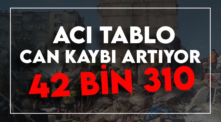 Kahramanmaraş merkezli meydana gelen depremlerde hayatını kaybedenlerin sayısı 42 bin 310'a yükseldi.