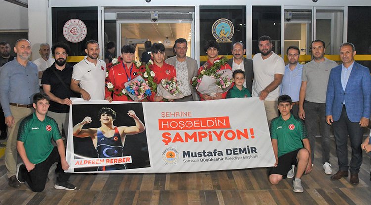 İtalya’da düzenlenen U17 Dünya Güreş Şampiyonası’nda altın madalya kazanan Büyükşehir Belediyespor sporcusu Alperen Berber ile dünya 3’ncüsü İbrahim Özdemir, Samsun’da çiçeklerle karşılandı.