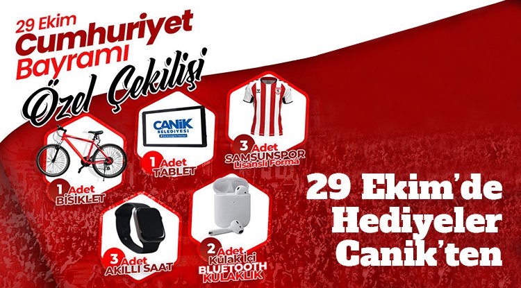 Canik Belediyesi, 29 Ekim Cumhuriyet Bayramı Özel Çekilişi'yle birbirinden özel hediyeleri vatandaşlarla buluşturuyor.