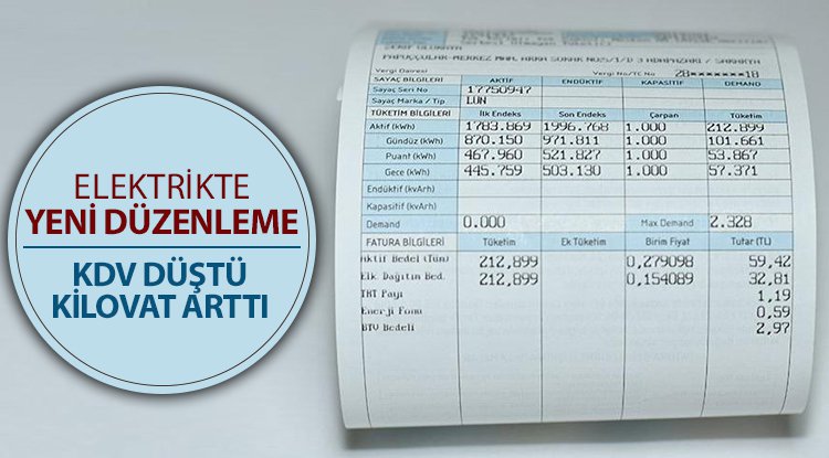 Vatandaş ve esnafın sırtındaki fatura yükünü hafifletmek için elektrikteki KDV, yüzde 18'den yüzde 8'e düşürüldü. Ayrıca meskenler için daha önce 150 kilovattan 210 kilovata çıkarılan tarife sınırı da 240 kilovata yükseltildi.