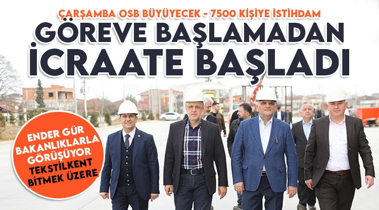 Cumhur İttifakı AK Parti Çarşamba Belediye Başkan Adayı Ender Gür, göreve başlamadan icraatlara başlarken, "Çarşamba OSB'de tüm yer tahsisleri yapıldı. Yer isteyen var ama yer yok. OSB'nin hemen yanında orman vasfını kaybetmiş 400 bin metrekare arazi var. Bakanlıklarla o araziyi de OSB'ye dahil etmek için görüşüyoruz" dedi
