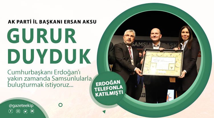 AK Parti Samsun İl Başkanı Ersan Aksu, "Genel Başkanımız ve Cumhurbaşkanımız Sn. Recep Tayyip Erdoğan'ın Genişletilmiş İl Danışma Meclisi Toplantısı'na telefonla bağlanması ve bizlere güveninin sonsuz olduğunu bir kez daha ifade etmesi gurur ve mutluluk vericiydi. Yakın bir gelecekte kendilerini Samsun'umuzda hemşehrilerimizle buluşturmanın heyecanı ve arzusu içerisindeyiz" dedi.