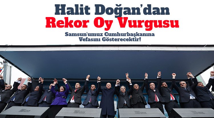 Cumhurbaşkanı Erdoğan’ın Samsun’dan rekor bir oy beklediğini vurgulayan Cumhur İttifakı AK Parti Samsun Büyükşehir Belediye Başkan Adayı Halit Doğan, “Biz, şehrimize hizmet için yola çıktık. Samsun’umuz daha hızlı, daha güçlü ve daha ileri olsun istiyoruz. Şehrimizi, Türkiye Yüzyılı’nın parlayan yıldızı haline getirme hedefiyle hareket ediyoruz. Sayın Cumhurbaşkanımız Recep Tayyip Erdoğan, Samsun’umuz için bu kutlu görevi şahsıma layık gördüler. Biz de bu hedefle canla başla çalışmaya devam ediyoruz. Cumhurbaşkanımız, Büyükşehir Belediye Başkanlığı görevimi açıklarken, ‘sadece Samsun’un belediye başkanı adayı olarak değil, en çok oy alacak aday’ olarak beni seçtiklerini ifade etmişlerdi. Hem çok büyük bir gurur hem de çok büyük bir sorumluluk. Bu sorumluluğun bilinciyle hareket ediyoruz. Samsun’umuz Cumhurbaşkanımıza her zaman vefasını göstermiştir. 31 Mart yerel seçimlerinde de hemşehrilerimizin aynı teveccühü göstereceklerine inancım tam. Samsun’umuz 17 ilçemizin tamamıyla bizi yalnız bırakmayacak, Cumhurbaşkanımız Sayın Erdoğan’a bizi mahcup etmeyecektir. Biz de hemşehrilerimizi mahcup etmeyecek, Samsun’umuz için canla başla çalışmaya devam edeceğiz. Biz bir ahenk ile bu şehri daha ileri taşımaya söz verdik. Sen, ben, o demeden, biz Samsun'uz bilinciyle hareket edecek her alanda daha hızlı, daha güçlü ve daha ileri olacağız” dedi.