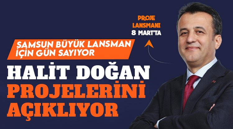Daha hızlı, daha güçlü, daha ileri vizyonuyla seçim çalışmalarına tüm hızıyla devam eden Cumhur İttifakı AK Parti Samsun Büyükşehir Belediye Başkan Adayı Halit Doğan, 8 Mart Cuma günü Samsun için hayata geçirecekleri projeleri açıklıyor. SBB Başkan Adayı Halit Doğan, Proje Lansmanını; 8 Mart Cuma günü saat 15.00’te Samsun Büyükşehir Belediyesi Sanat Merkezinde gerçekleştirecek.