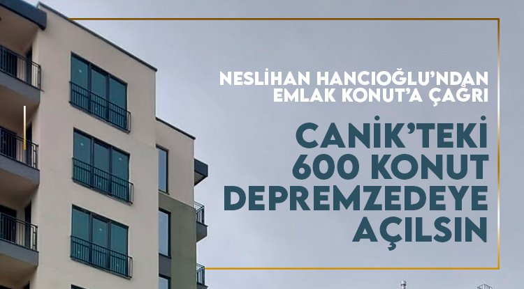Emlak Konut GYO tarafından Canik’te yapımı tamamlanan konutlardan 600’ünün, hali hazırda kamunun mülkiyetinde olduğuna işaret eden CHP’li Neslihan Hancıoğlu, bu konutların geçici olarak depremde evi yıkılan ailelerin kullanımına açılması için çağrı yaptı.